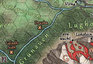 In Druzba-Ort gibt es den Eingang zu einem Kaer für die Windlinge in Notfällen. Dort werden heute Schriften aus ganz Barthavion gelagert, welche teilweise die Elben dort hinbringen. Der Bibliothekar Illix Ferderkiel half den Helden bei den Recherchen über die Schutzkuppel.