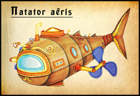 Ein berühmtes Beispiel für ein solches Meisterwerk ist der Natator aeris (wörtlich "Luft-Schwimmer"). Es handelt sich um ein voll funktionsfähiges, arkan-mechanisches Tauchboot, das von dem brillanten Ingenieur Ferolax Oreangle konstruiert wurde. Das unbezahlbare Unikat nutzt die arkane Luftessenz Ether sowohl zur Steuerung des Auftriebs in den Tauchzellen als auch zur Lebenserhaltung der Besatzung und sogar zur Verteidigung mittels arkaner Entladungen.