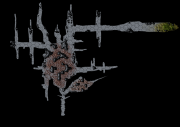 Also machen sich die Helden auf den Weg und steigen einen steilen Pfad hinab in den Abgrund. Unten angekommen suchen sie den Abhang nach Höhlen ab. Octavia hat einen vielversprechenden Spalt entdeckt, zu dem man allerdings ein Stück hochklettern muss. Der Spalt ist aber breit und hoch genug, dass man sich seitlich und leicht in der Hocke hindurch quetschen kann. Aus dem Spalt strömt ihnen ein intensiver, beißender Gestank entgegen.
